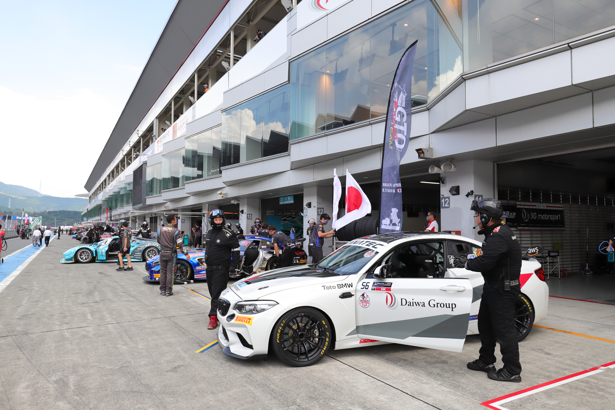 今回のGTアジアでは、急遽M2クラスが新設され、参戦が決まりましたが、参戦するにあたり、監督の小川さん、マネージャーの伊藤さんをはじめ、右も左もわからない中で準備を進め、GTアジア富士戦への参戦が叶いました。