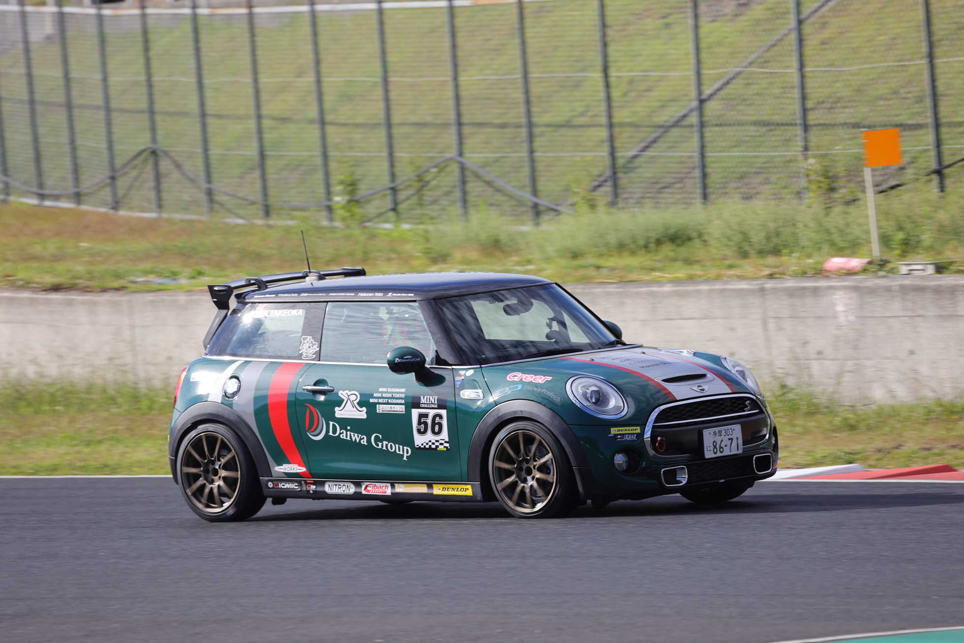 一方MINI CPSクラスの竹岡選手は、前日の走り出しから着実にタイムを上げていきます。このクラスは、予選と2レースをタイヤ交換無しで挑まなければなりません。そのため、タイヤ温存もかねて、3周でアタックをまとめます。2,02,118と練習走行から合計4秒自己ベストタイムを上げ、クラス7位からのスタートとなりました。