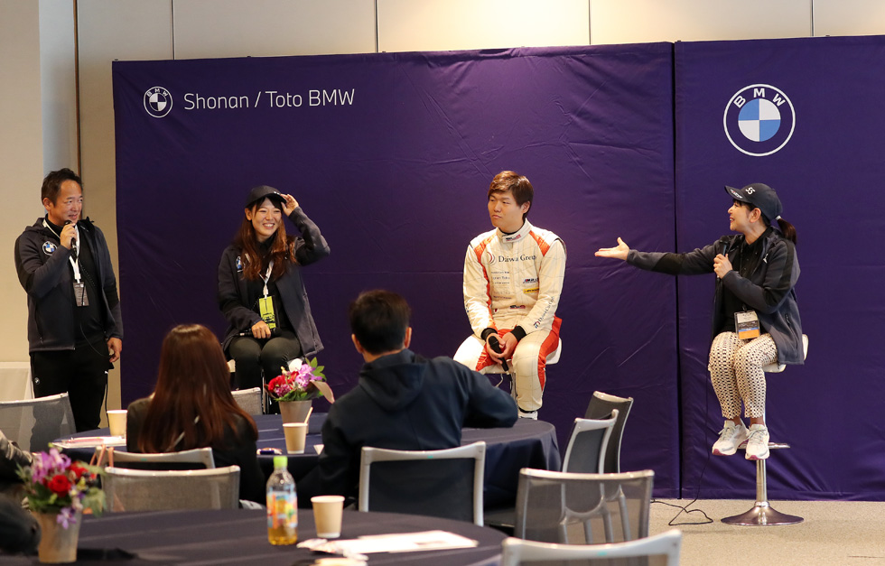 今回は観戦イベントとして、ピットツアーや本コースの体験走行、そして小川監督、石井選手、モータージャーナリストの竹岡圭さん、私の4人でのトークショーも行いました。
